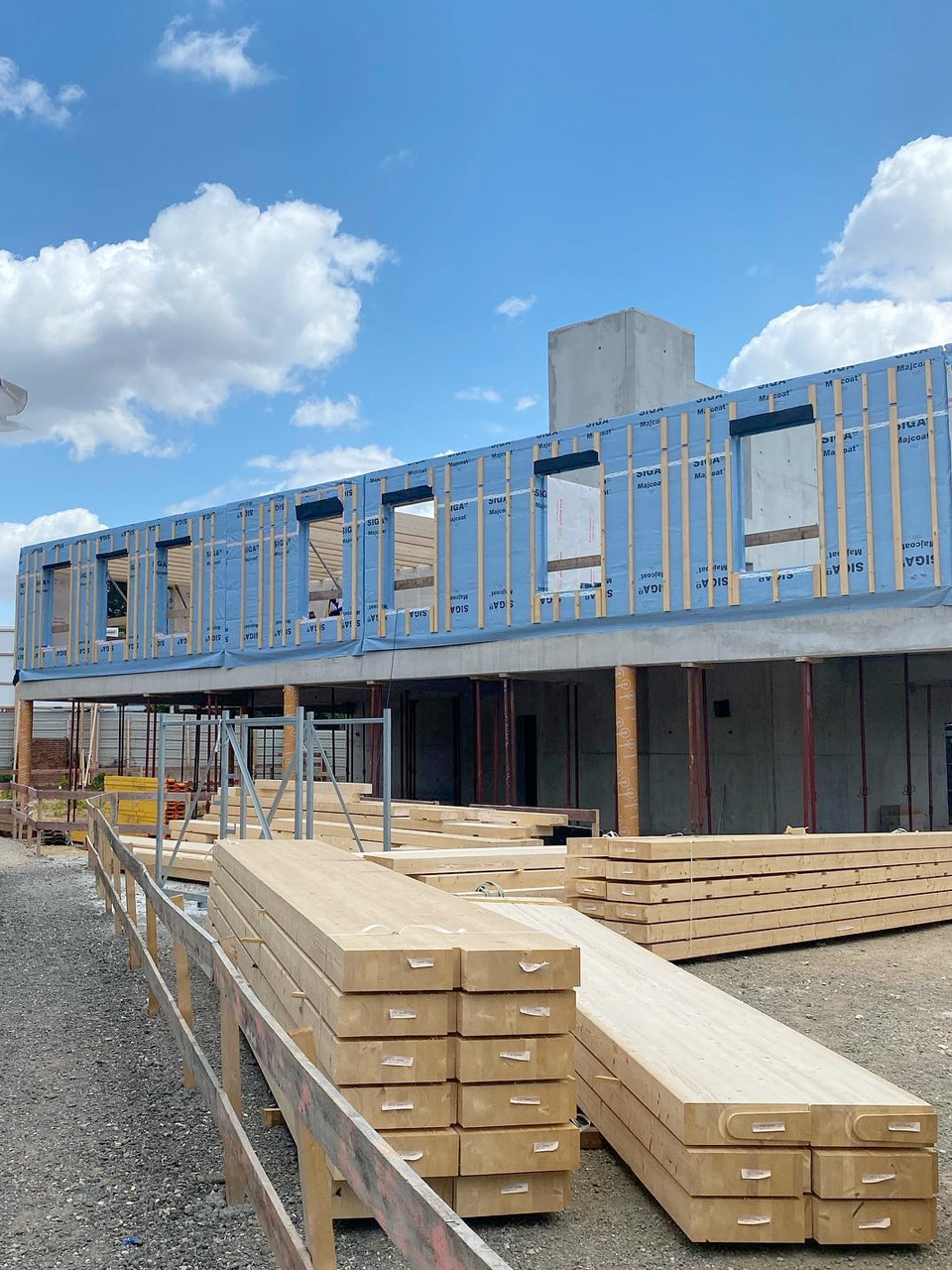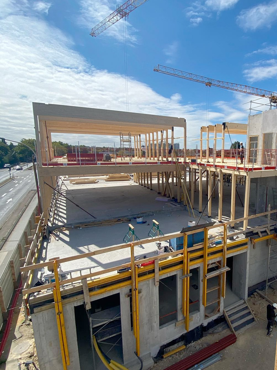 Le collège Samuel Paty, situé à Valenton (94), est un établissement de 8 500 m² conçu pour accueillir 750 élèves. Il repose sur un socle en béton surmonté de deux étages en structure poteaux-poutres bois, intégrant près de 1 000 m³ de bois dont 85 % d’origine française.