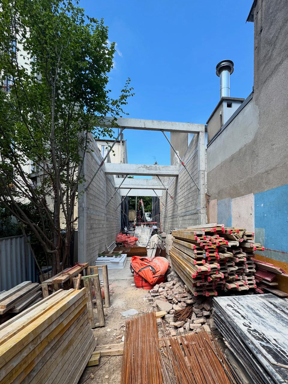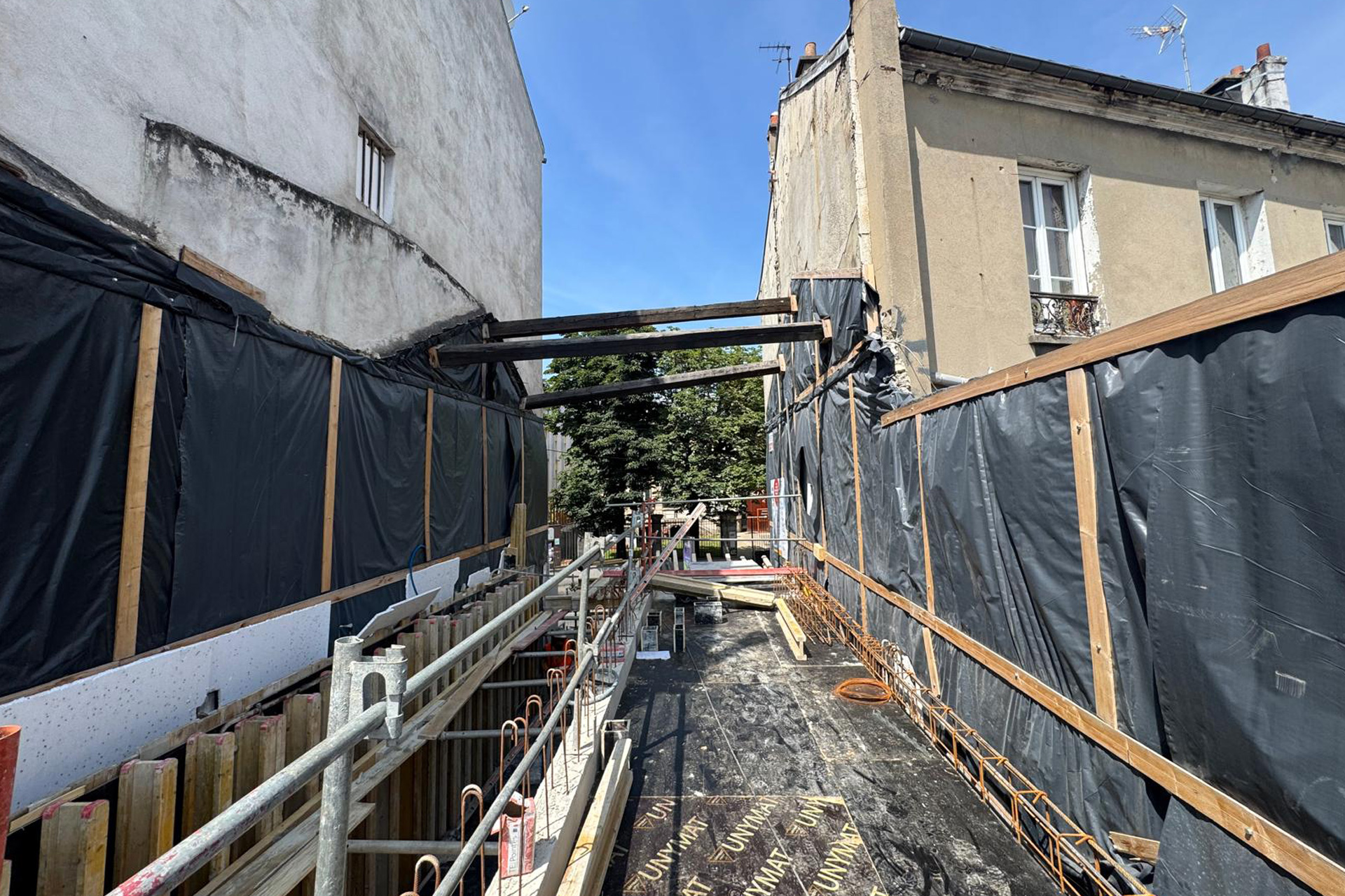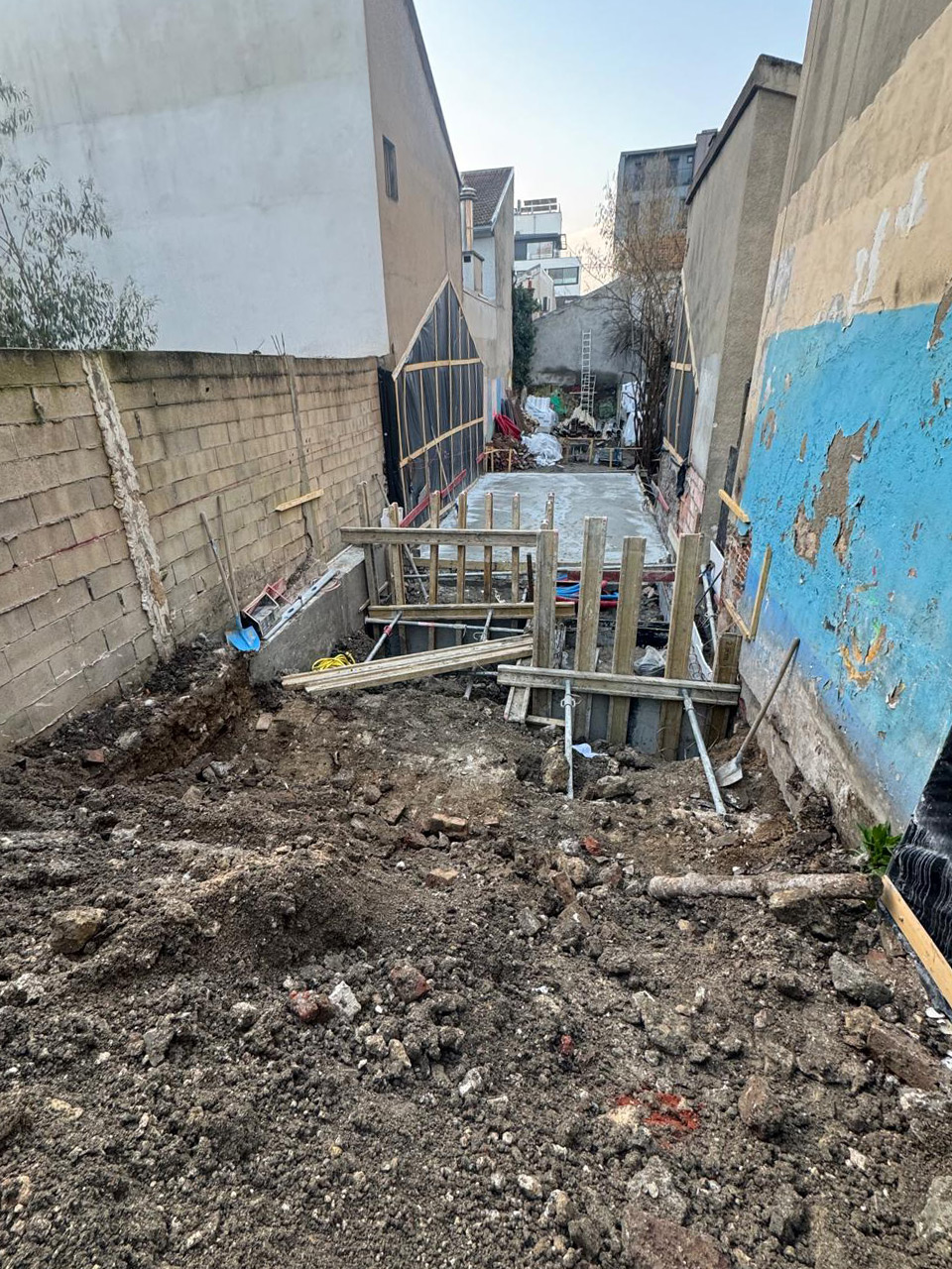 Sur une parcelle de 45m de long et de 5m de large, nous réalisons la construction d’un restaurant qui s’étend sur toute la longueur de la parcelle et un sous-sol. Cet ERP commercial sera surélevé par 3 étages de bureaux et d’une terrasse pour Aequo Construction.
