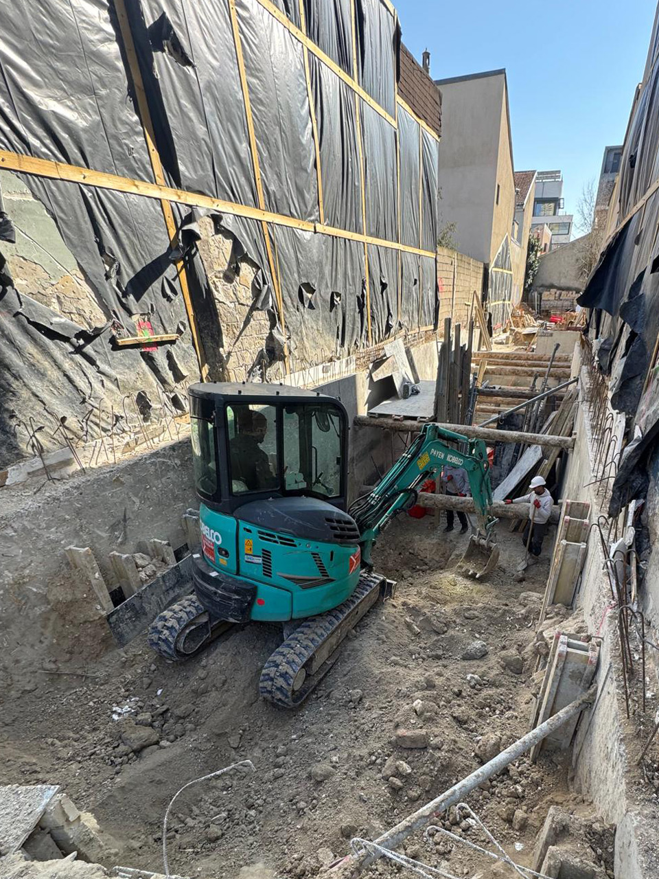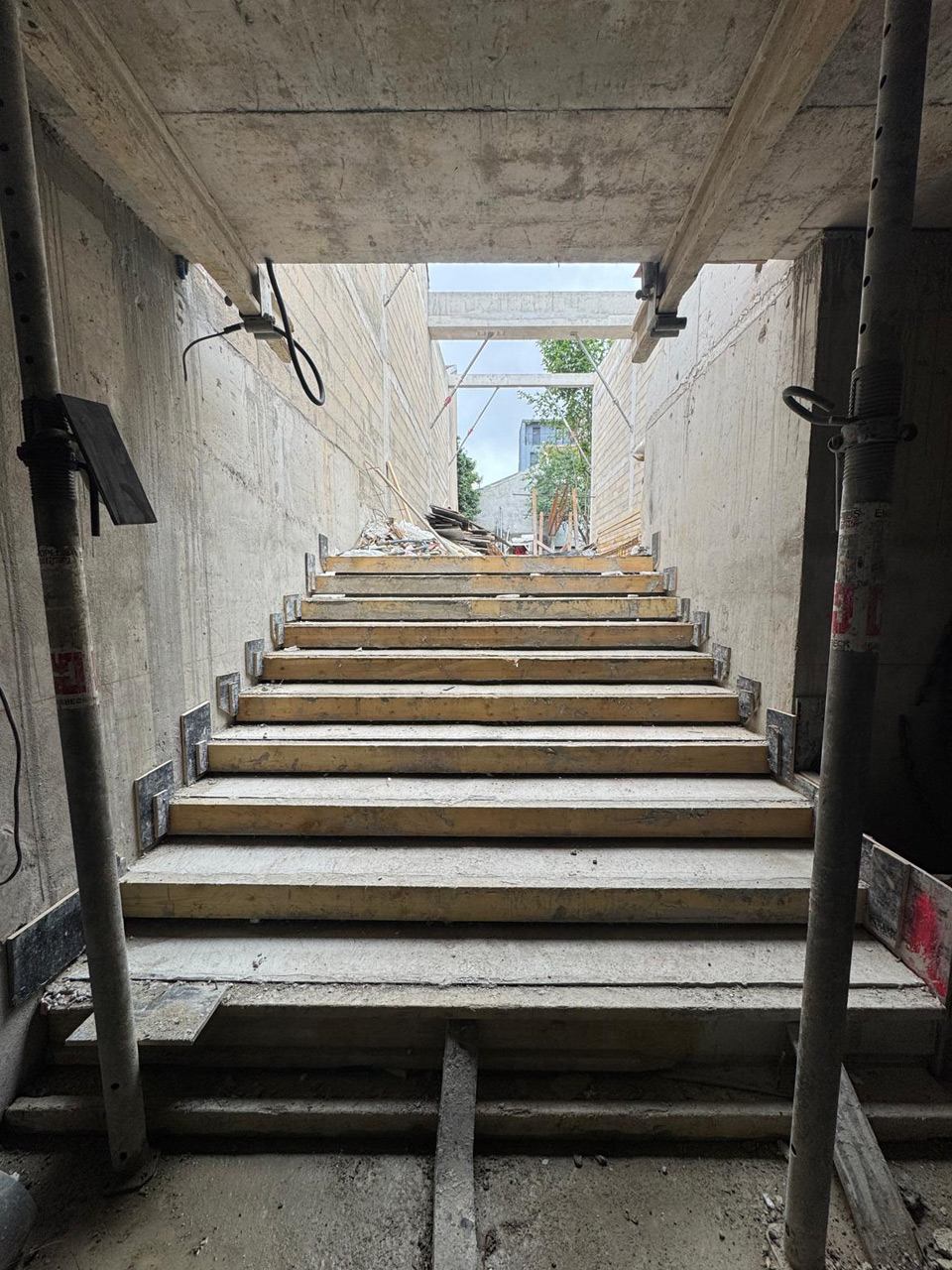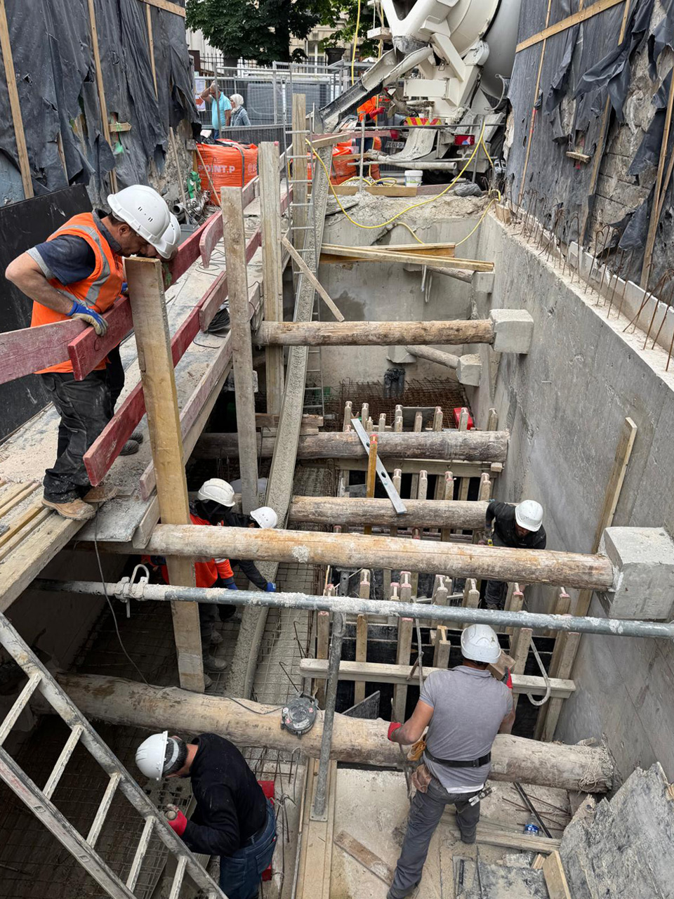 Sur une parcelle de 45m de long et de 5m de large, nous réalisons la construction d’un restaurant qui s’étend sur toute la longueur de la parcelle et un sous-sol. Cet ERP commercial sera surélevé par 3 étages de bureaux et d’une terrasse pour Aequo Construction.